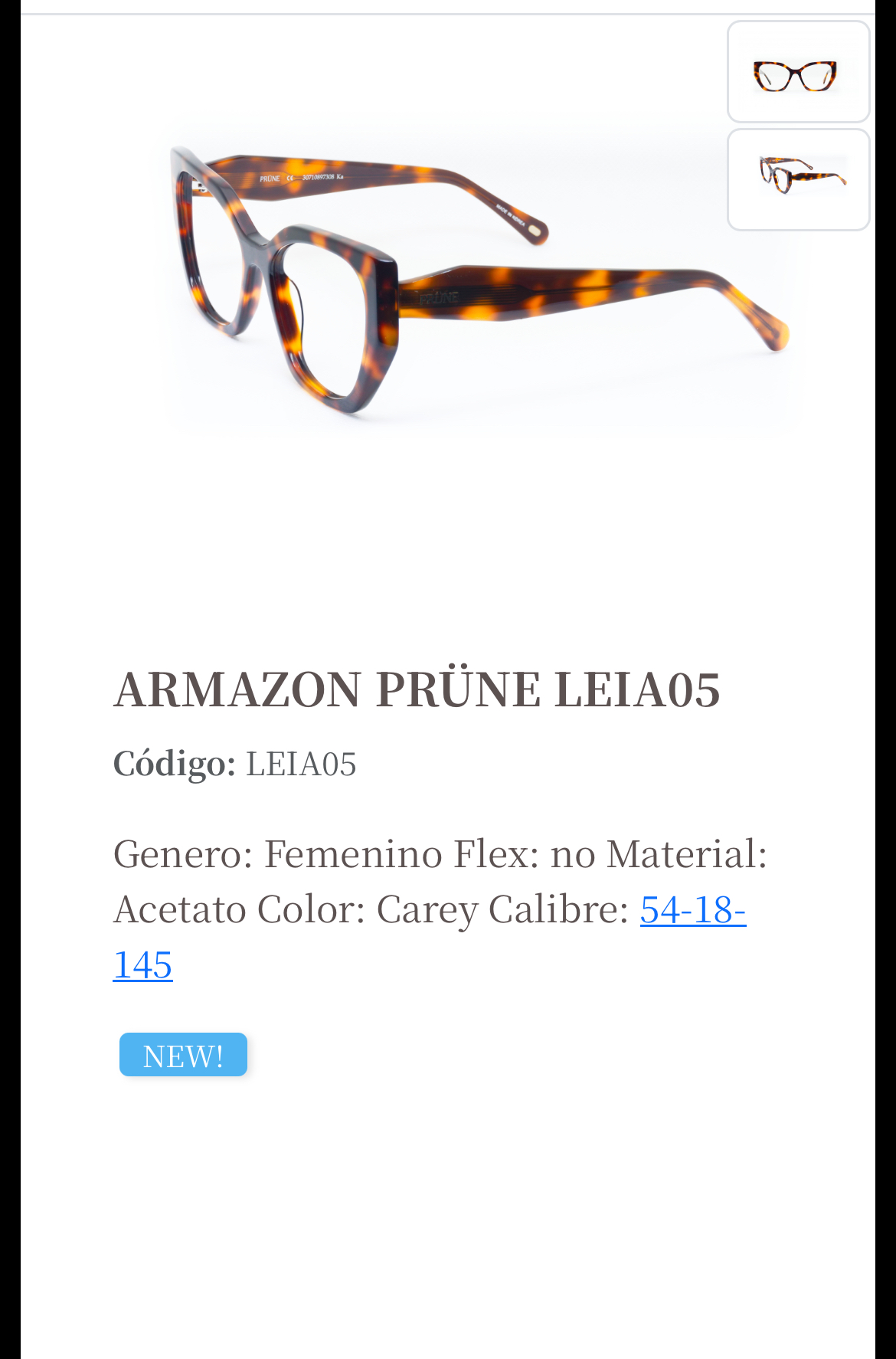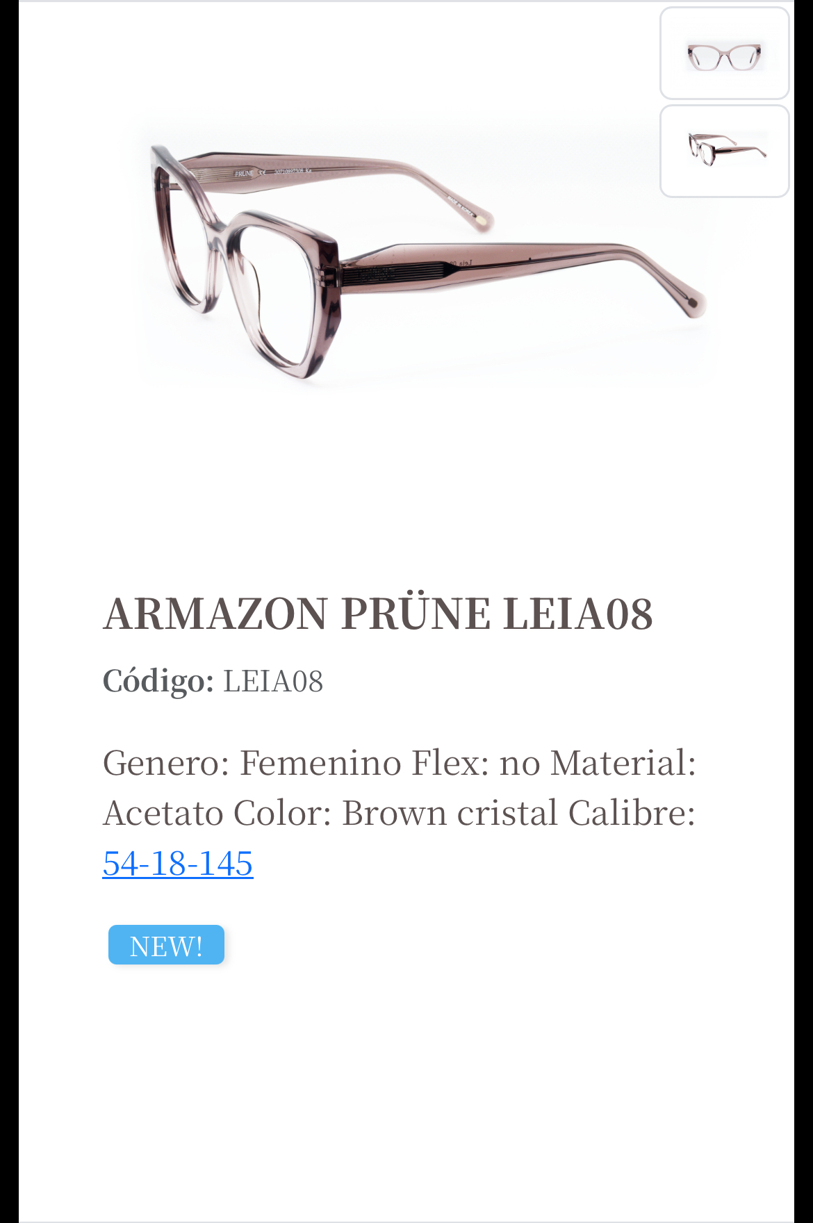 Género: Femenino Flex: No Material: Acetato Calibre: 54-18-145 Colores: Black, Carey, Brown Cristal