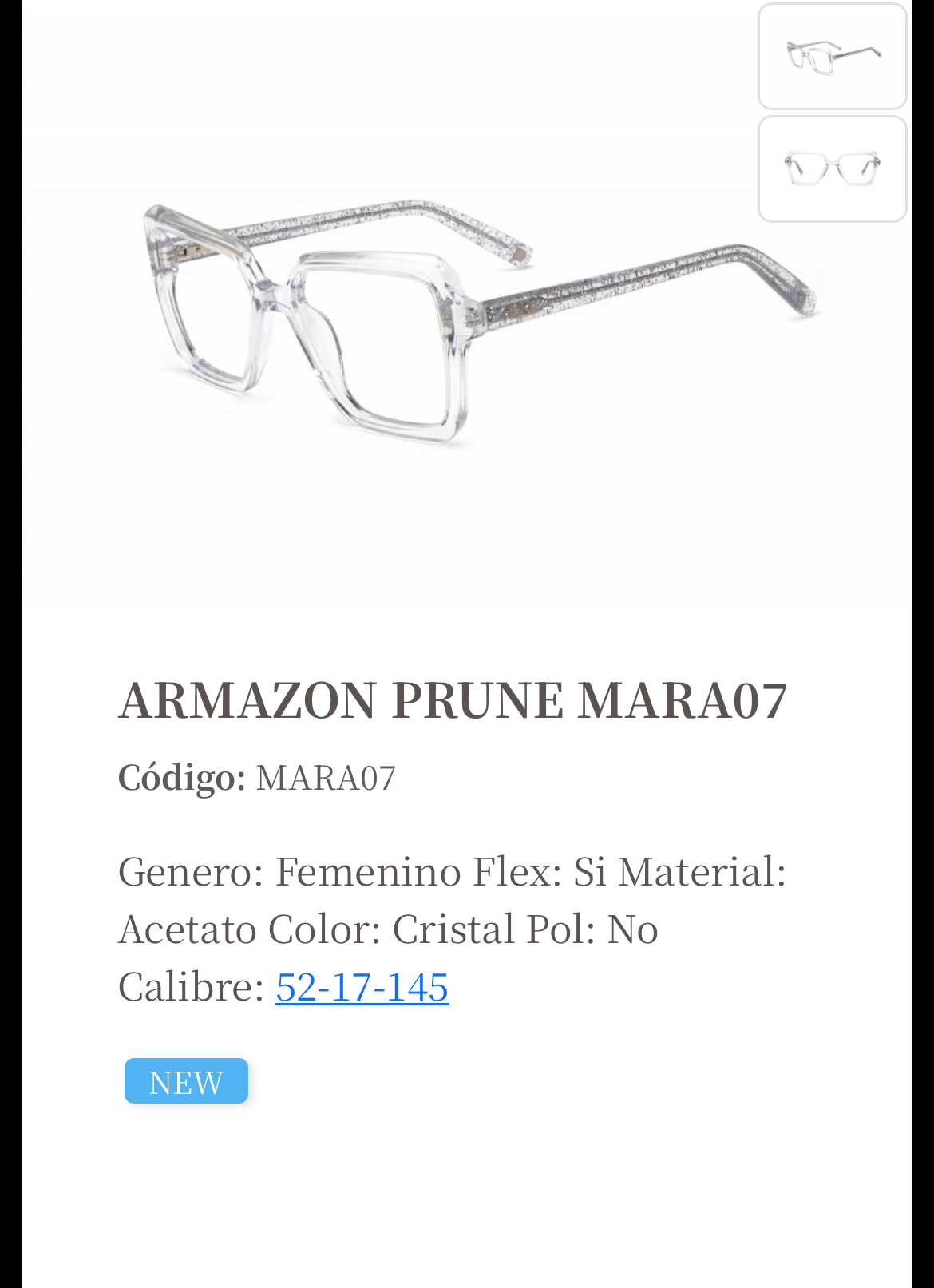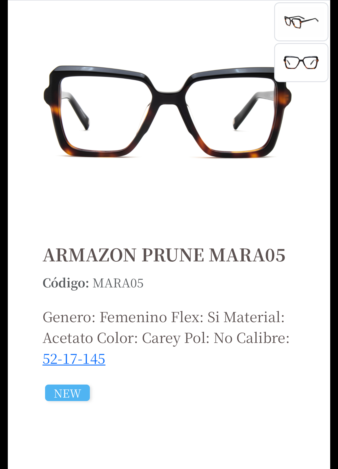 Género: Femenino Flex: Si Material: Acetato Calibre: 52-17-145 Colores: Black, Carey, Caramel Pol.: NO